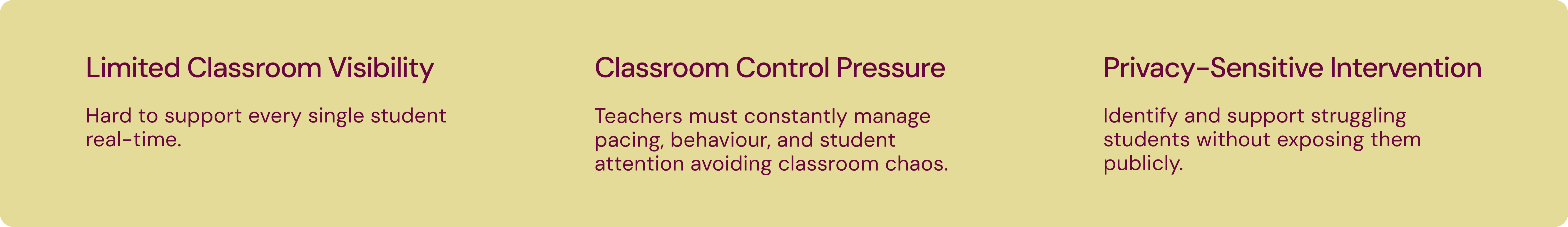 Teachers managing live classrooms lack real-time, private visibility into student engagement and understanding