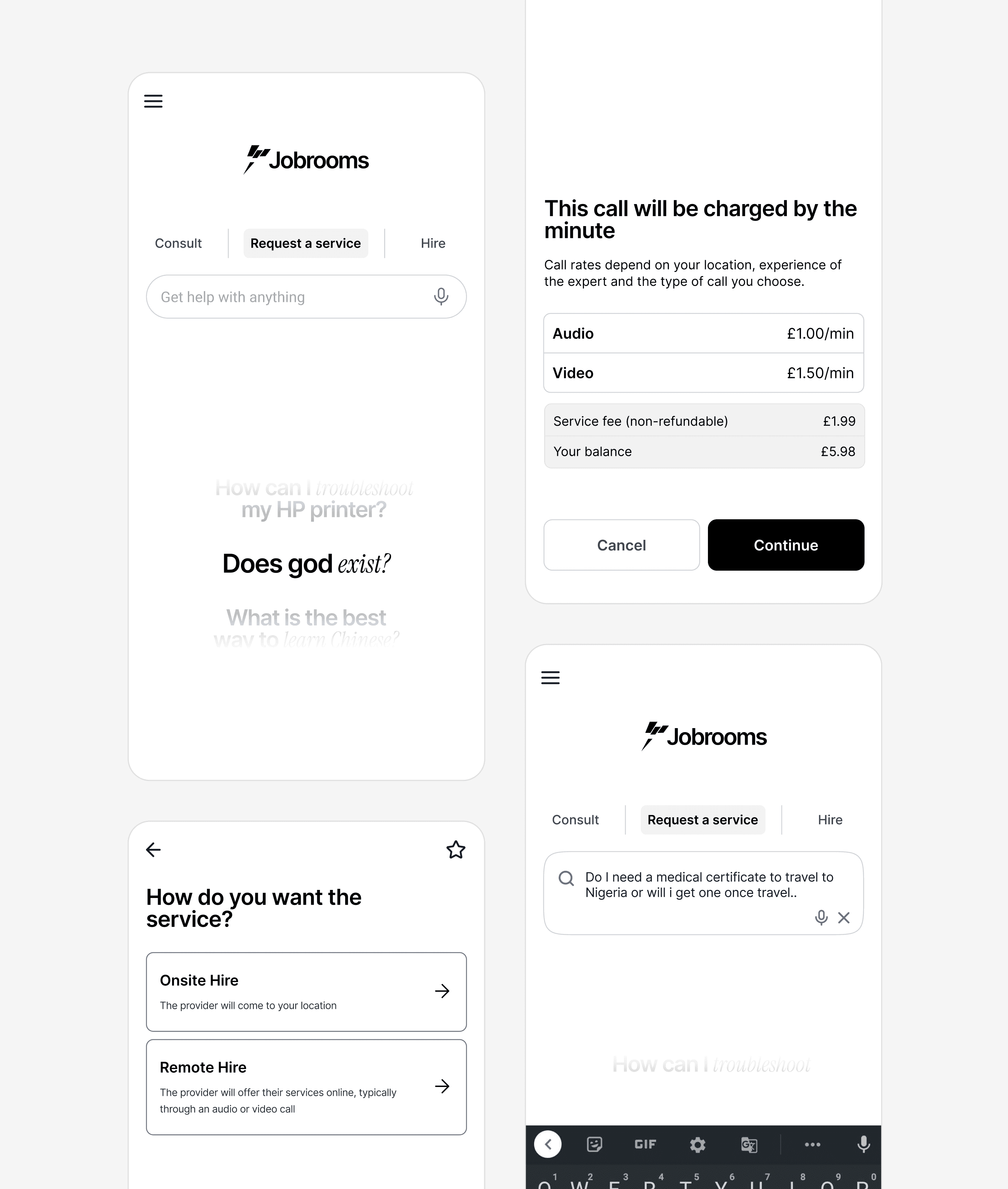 Search engines give you information, but they can't truly understand your unique situation. Some questions need a real conversation with someone who gets the nuances. Jobrooms bridges this gap by connecting you directly to experts across different fields, languages and locations, making human insight as easy to access as a Google search.